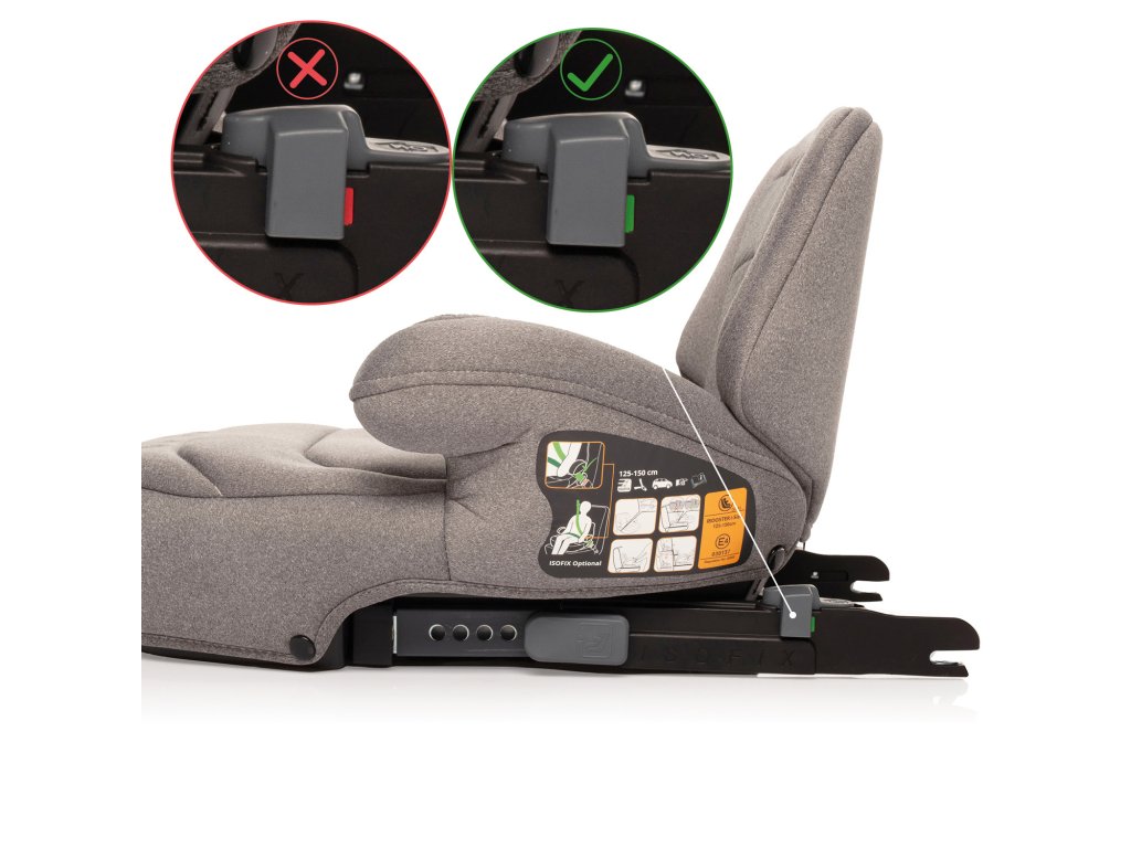 Podsedák iBooster byl testovaný v Evropě a splňuje nejnovější bezpečnostní normu i-Size. Do auta ho lze instalovat pomocí isofixu a bezpečnostního pásu vozidla nebo pouze pomocí bezpečnostních pásů vozidla. Indikátory rodičům ukážou, kudy je potřeba pás vést, aby perfektně chránil dítě.