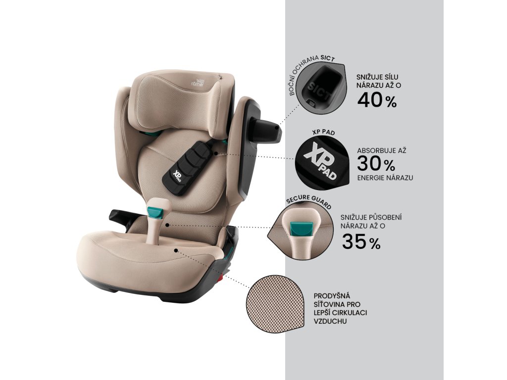• Odvětrávání v zadní části autosedačky pro komfort během dlouhých cest