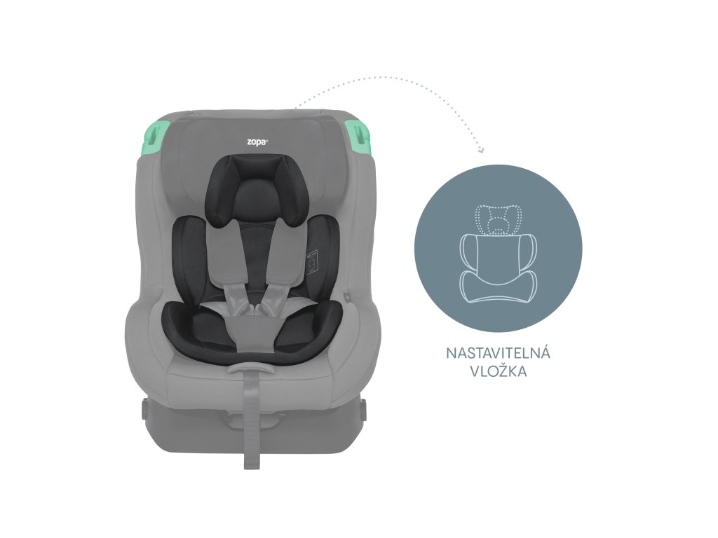 Nastavitelná vložka spolu s hlavovou opěrkou umožňují autosedačku přizpůsobit