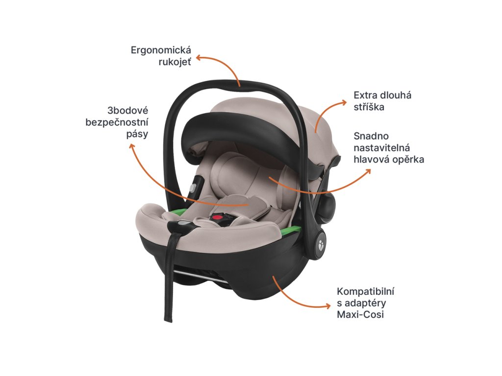 z konstrukce kočárku. Autosedačka je kompatibilní s adaptéry Maxi Cosi.