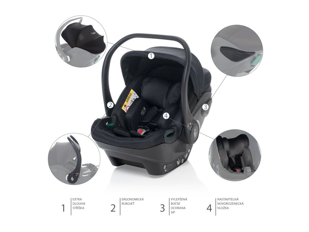 Perfektní boční ochrana, nastavitelná novorozenecká vložka z paměťové pěny,