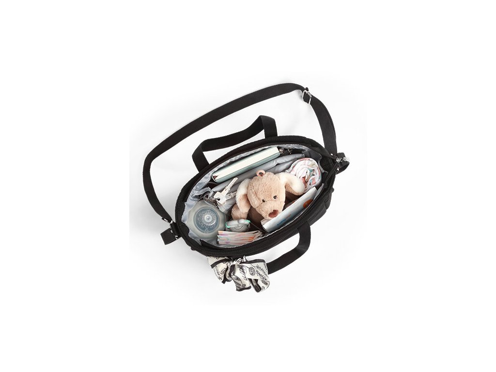 - Přestože je taška kompaktní, její vynikající struktura poskytuje prostor pro množství předmětů uvnitř. Pokud se chystáte na krátkou procházku s miminkem, do ní snadno vložíte cokoli, co potřebujete.