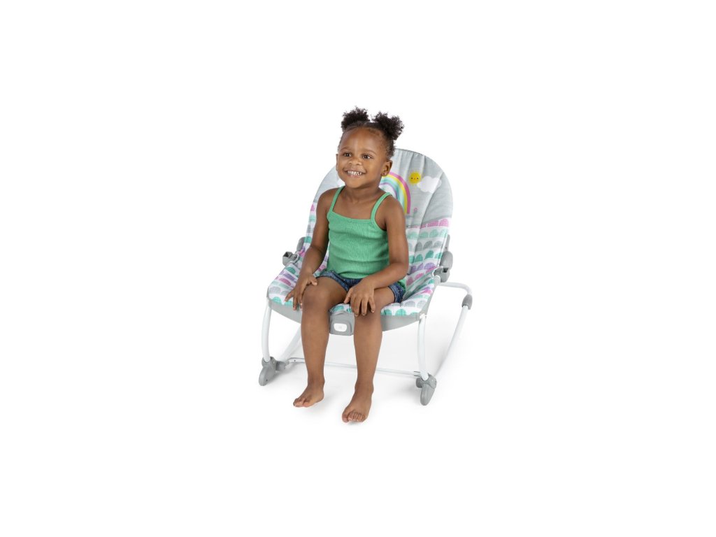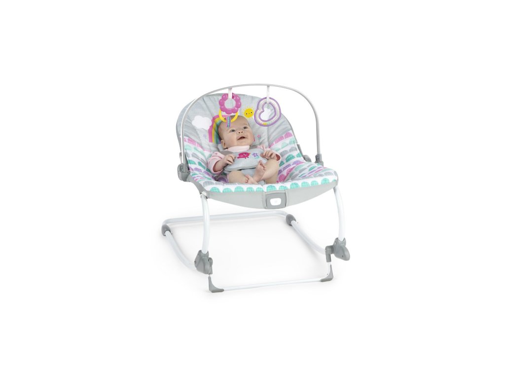 - Získejte roky používání s tímto multifunkčním houpátkem! Houpátko Bright Starts Rosy Rainbow pro kojence a batolata se mění z houpacího na stacionární sedátko a roste spolu s dítětem až do 18 kg. Přepínání z houpacího na stacionární sedátko se stabilizačním předním stojanem.