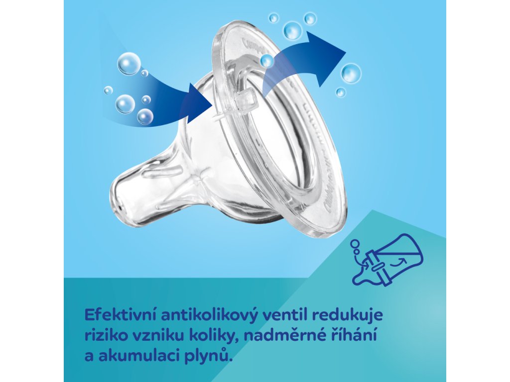 Účinný antikolikový ventil snižuje riziko vzniku koliky, nadměrné říhání a hromadění plynu.