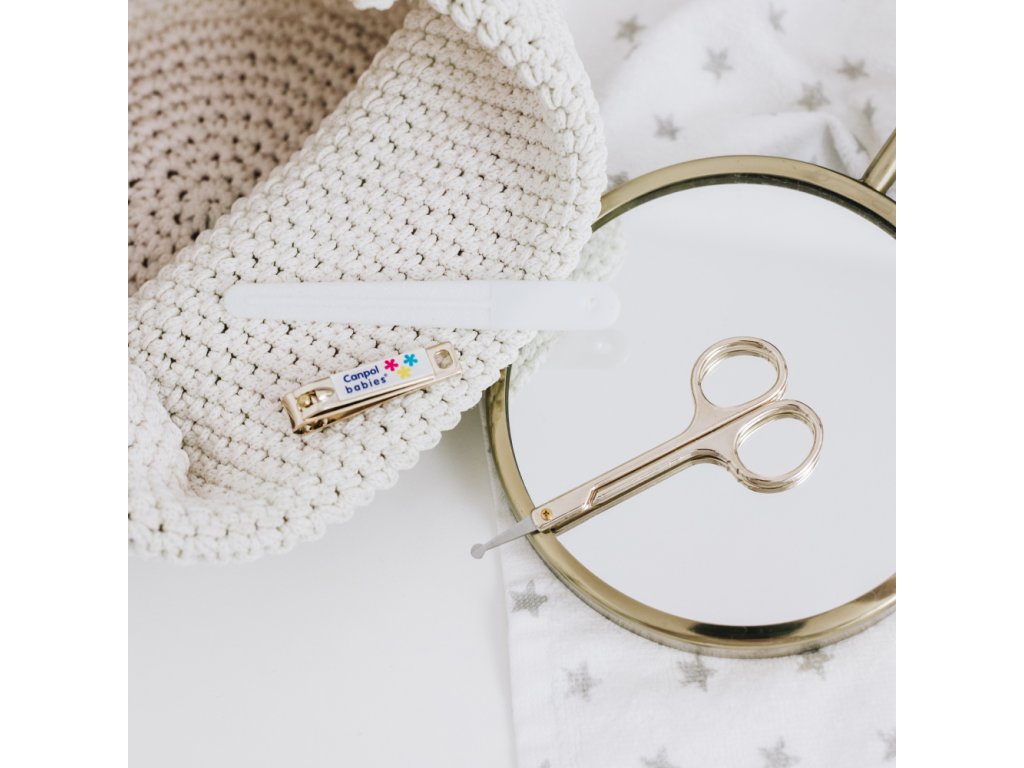 Nůžky, pilník a kleštičky pro snadnou a bezpečnou péči o nehty Vašeho dítěte. Nůžky s kulatou špičkou minimalizují možnost poranění dítěte při stříhání nehtů. Nehty zkrátíte kleštičkami a speciálně tvarovaným pilníkem upravíte jejich tvar. Aby jste minimalizovali možnost poranění dítěte, doporučujeme stříhat nehty během spánku dítěte.