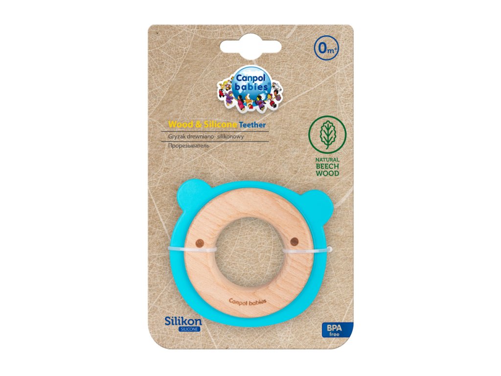 Canpol babies Dřevěno-silikonové kousátko Méďa
