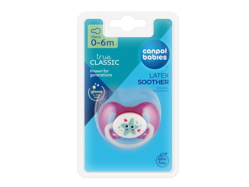 Canpol babies Dudlík svítící kaučukový třešinka 0-6m LOVE&SEA