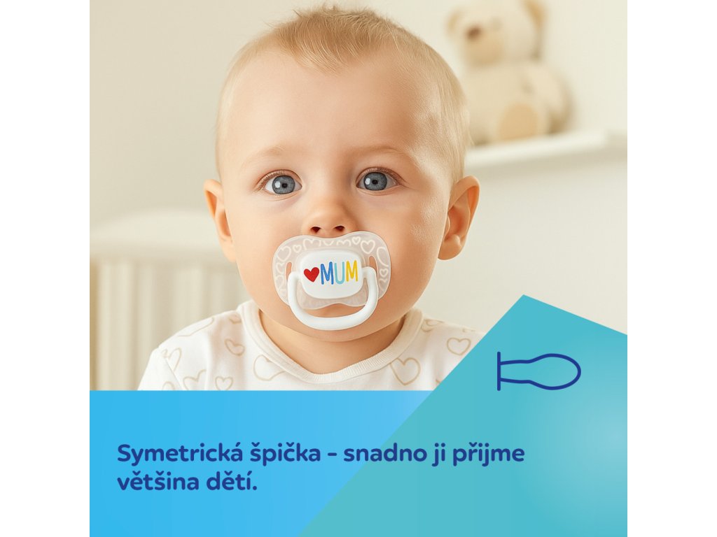 Symetrická špička - usnadňuje přijetí dudlíku miminkem.