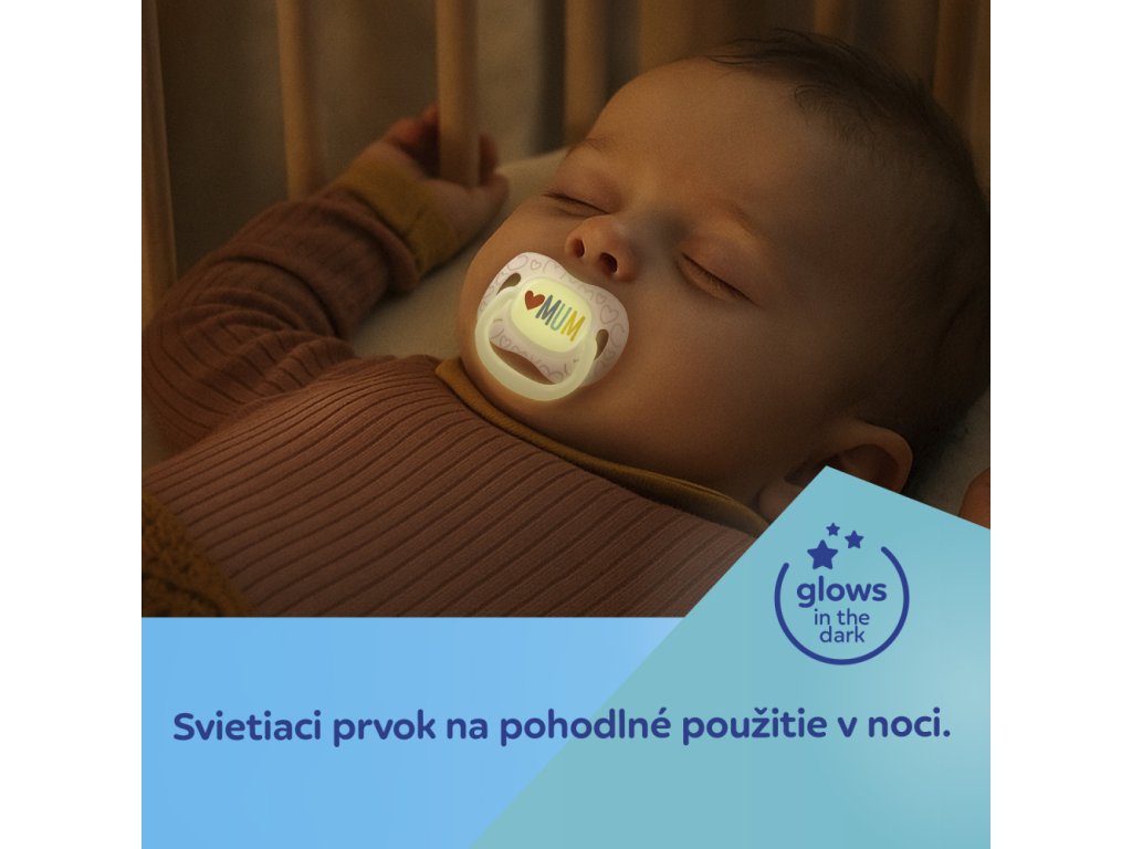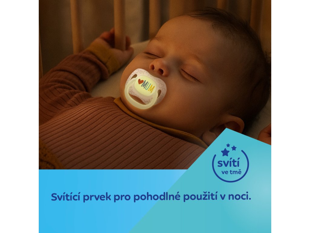 Svítící prvky ve tmě - usnadňují nalezení dudlíku v noci.