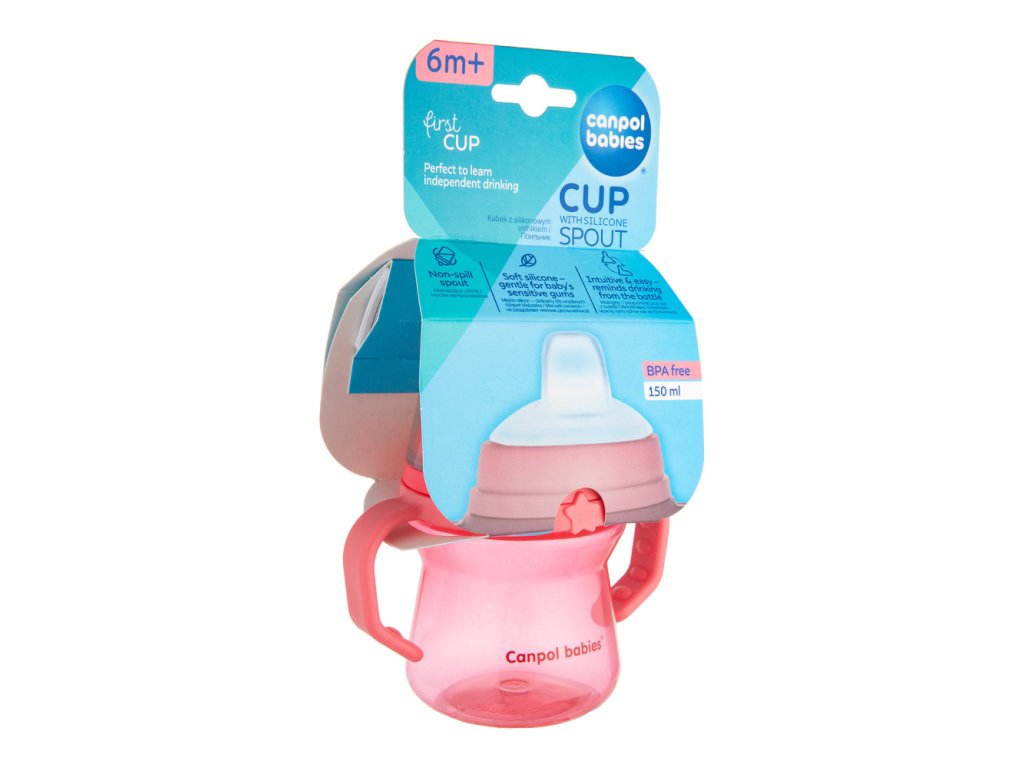 Canpol babies Hrneček se silikonovým pítkem FirstCup 150ml růžový