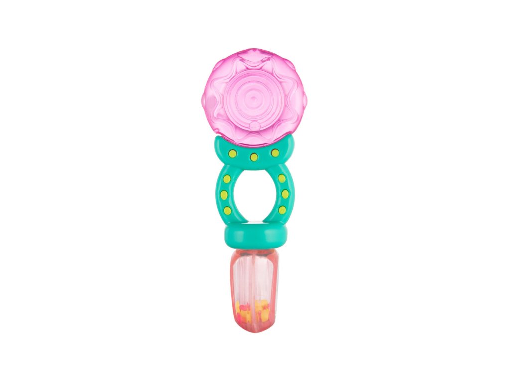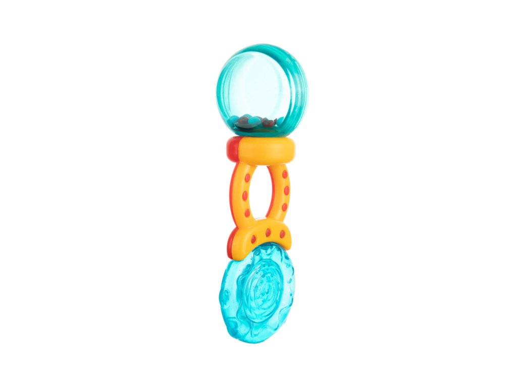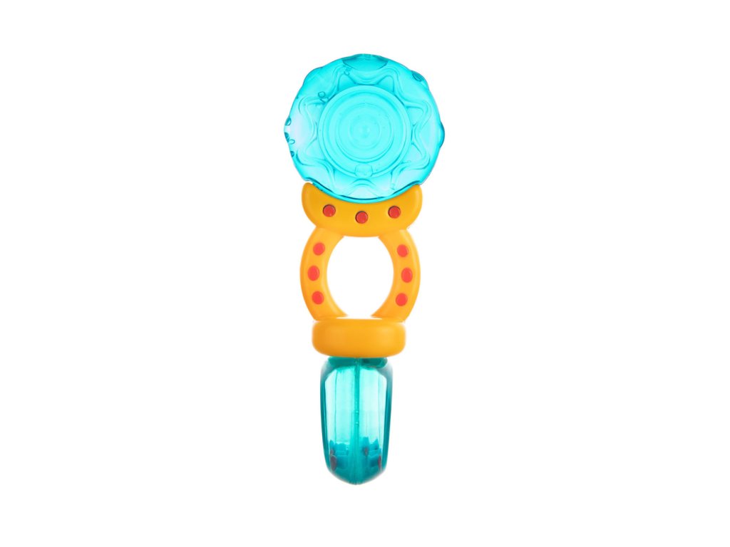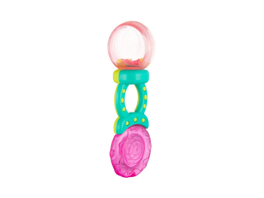 Chrastítko-kousátko je určeno pro nejmenší děti. Kombinuje výhody vodního kousátka a chrastítka, protože má měkké části, které přináší úlevu při růstu zoubků děťátka. Chrastítko s barevnými korálky jistě vaše batole zaujme a povzbudí je ke hře. Měkké části jsou přizpůsobeny citlivým dětským dásním. Jsou vyrobeny z odolných a bezpečných materiálů (bez ostrých hran). Praktické chrastítko umožňuje pohodlné držení v malých ručkách. Chrastítko-kousátko lze před podáváním ochladit v chladničce. To pomůže uklidnit bolest dásní při růstu zoubků děťátka.