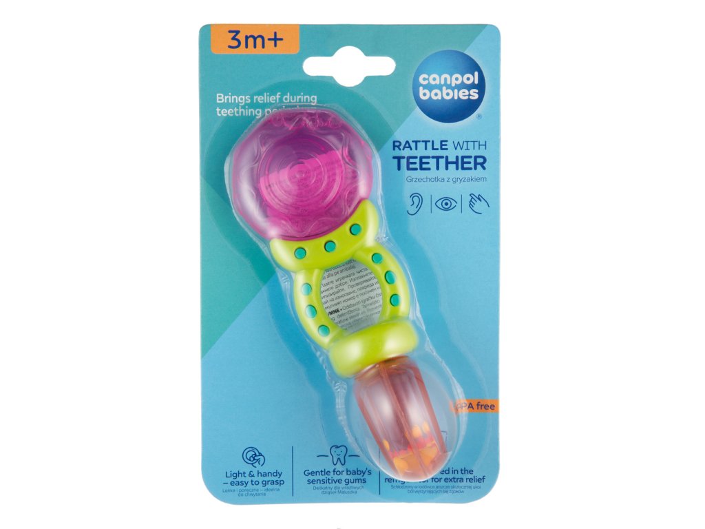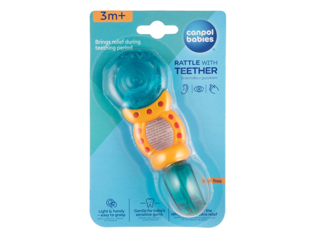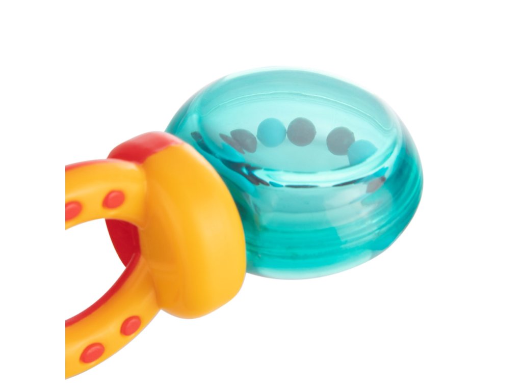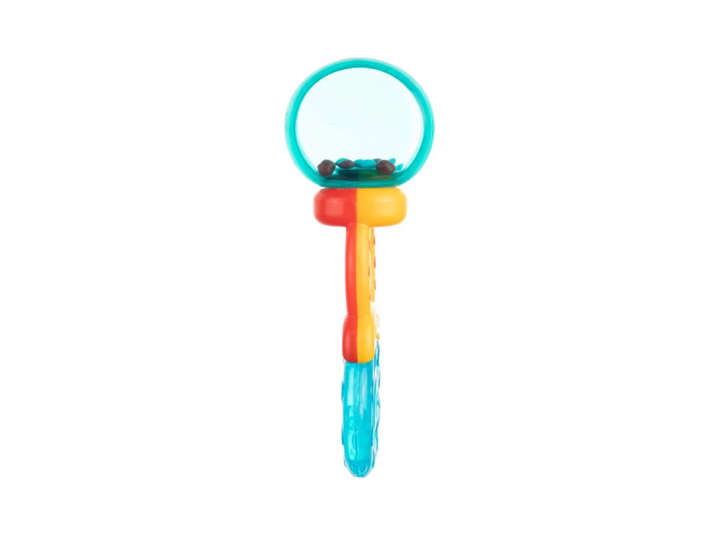 Chrastítko-kousátko je určeno pro nejmenší děti. Kombinuje výhody vodního kousátka a chrastítka, protože má měkké části, které přináší úlevu při růstu zoubků děťátka. Chrastítko s barevnými korálky jistě vaše batole zaujme a povzbudí je ke hře. Měkké části jsou přizpůsobeny citlivým dětským dásním. Jsou vyrobeny z odolných a bezpečných materiálů (bez ostrých hran). Praktické chrastítko umožňuje pohodlné držení v malých ručkách. Chrastítko-kousátko lze před podáváním ochladit v chladničce. To pomůže uklidnit bolest dásní při růstu zoubků děťátka.