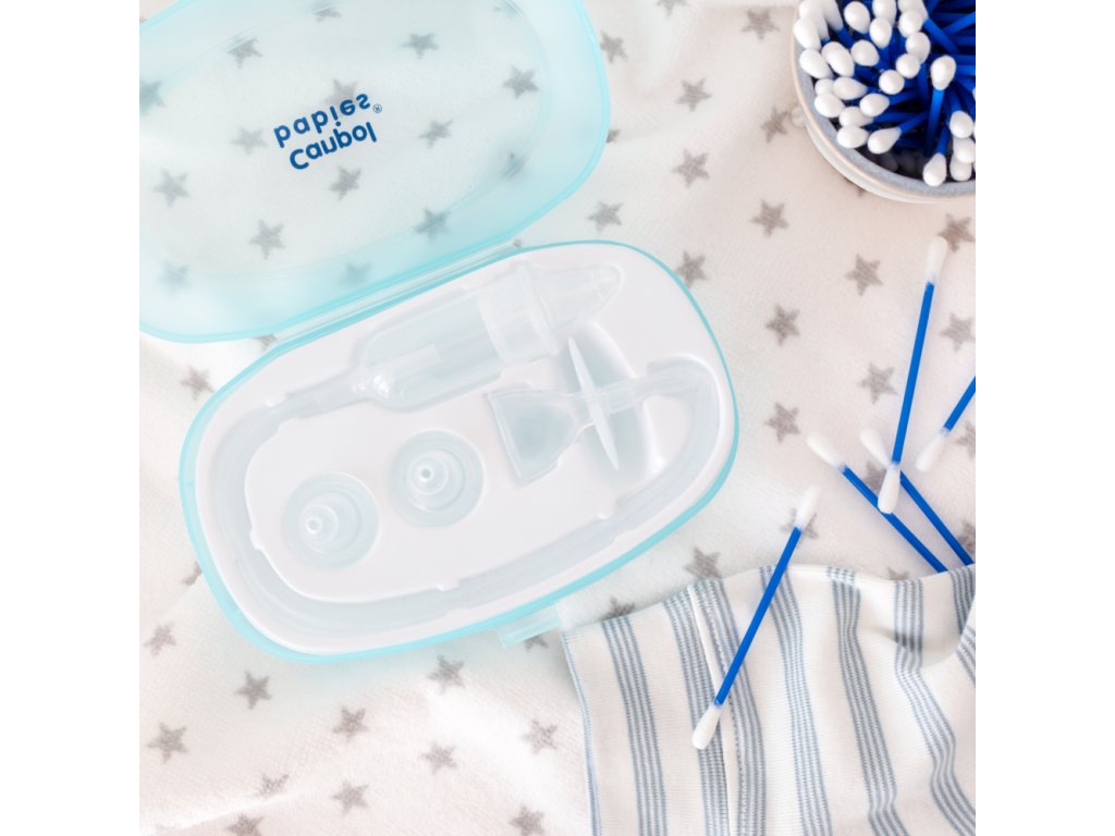 Nosní odsávačka s hadičkou v pouzdru je určena dětem mladším tří let, které neumí samy smrkat. Slouží k odsátí nadměrného množství hlenu z nosních dírek dítěte, který může způsobit kašel nebo záněty ucha. Výhodou odsávačky je nepřetržitá kontrola a regulace síly odsávání. Obsluha odsávačky je jednoduchá, nevyžaduje výměnu filtrů ani použití baterií. Sada obsahuje 2 náhradní koncovky.