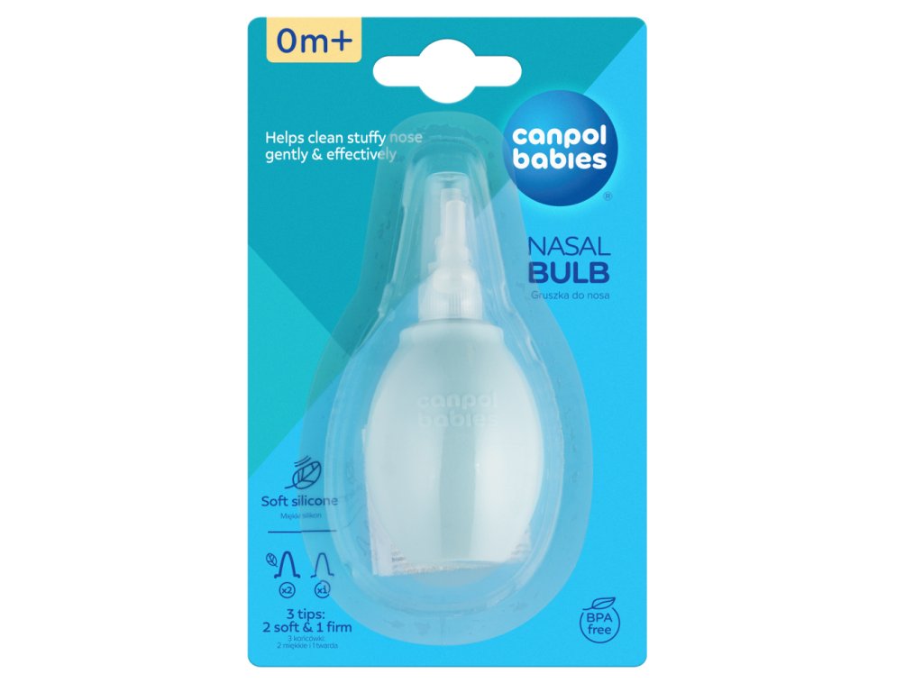 Nosní odsávačka s dvěmi koncovkami: tvrdou a měkkou slouží k hygienickému odstranění hlenu z nosních dírek nemluvňat a malých dětí.