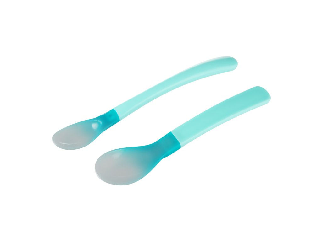 Lžičky mění barvu pod vlivem vysoké teploty (nad 40°C) na světlejší, což usnadňuje krmení dítěte jídlem správné teploty.