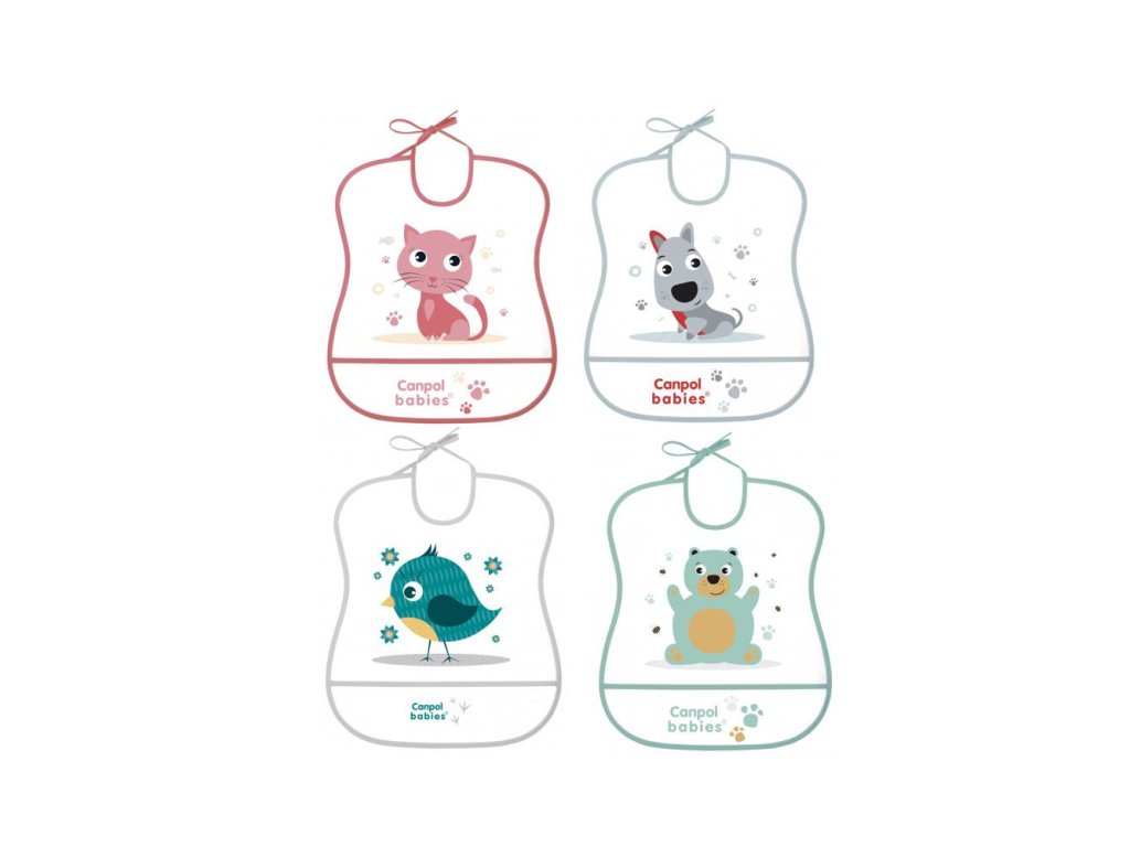 Měkký plastový bryndák s velkou kapsou z oblíbené kolekce CUTE ANIMALS je praktickým doplňkem při všech svačinkách.