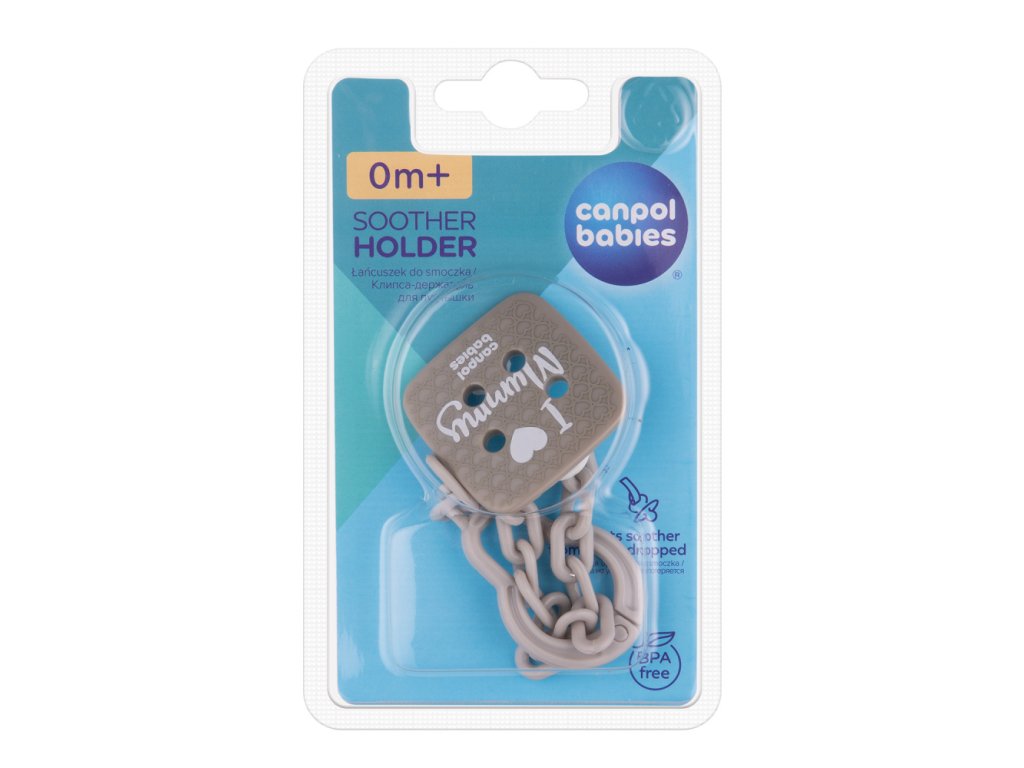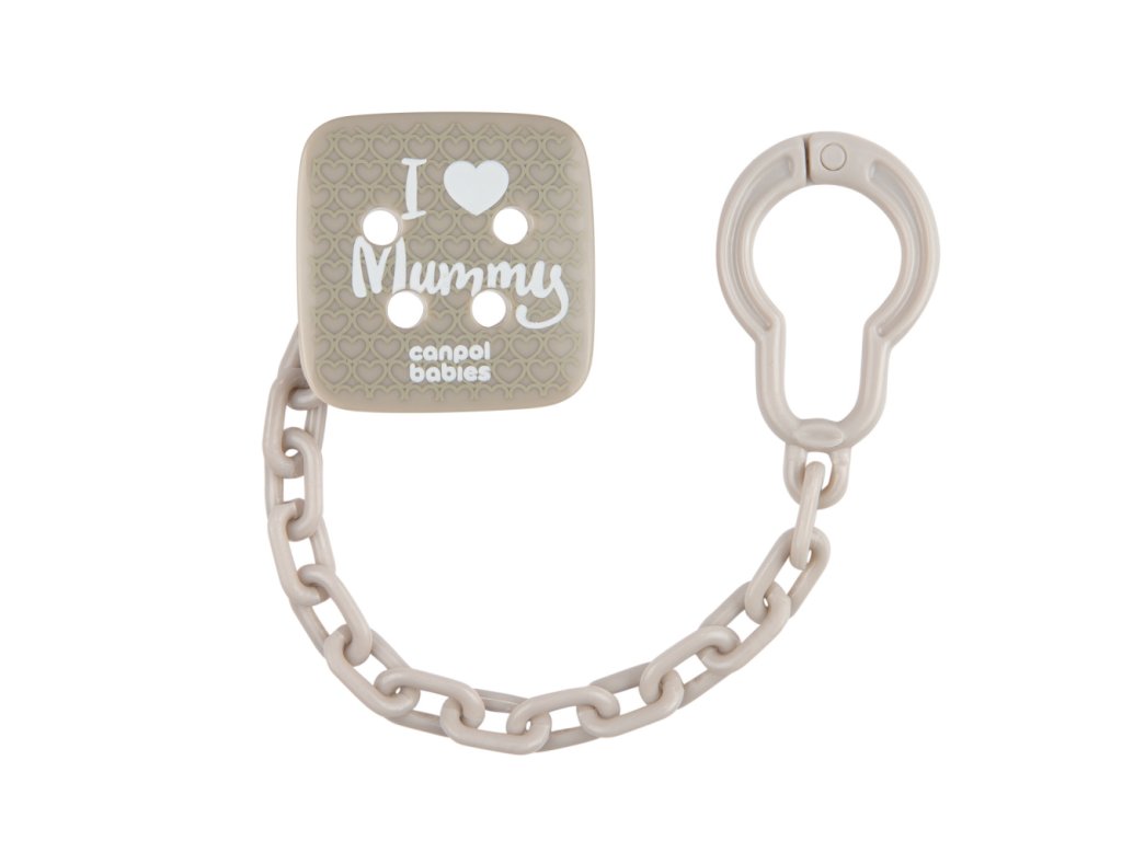 Canpol babies Řetízek na dudlík I LOVE MUMMY šedý