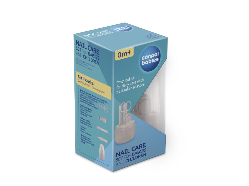 Kompletní sada na nehty pro miminka zabalená v praktickém voděodolném pouzdře, které umožňuje hygienické skladování a přenášení. Sada na nehty pro miminka se skládá ze 4 prvků – nůžek, šikovných kleštiček na nehty, jemného pilníku a pinzety. K efektivnímu a bezpečnému stříhání nehtů dítěte pomohou nejprodávanější nerezové nůžky s kulatou špičkou. Zaoblené konce nůžek zabraňují zranění. Jemný pilník na nehty pomůže odstranit nerovnosti nehtů a ochrání dítě před poškrábáním. Sada péče o nehty Canpol babies pro miminka a děti je dostupná ve dvou barevných provedeních. Je bezpečná pro děti od prvních dnů života.