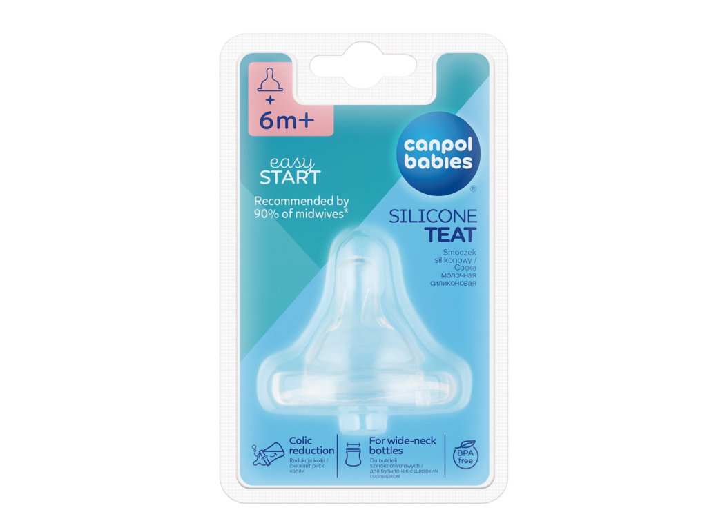 Protikolikový, silikonový dudlík na láhve se širokým hrdlem se velmi dobře odvzdušňuje a tím minimalizuje vznik dětské koliky. Podporuje správný vývoj skusu, řeči a dásní dítěte. Svým tvarem připomíná matčinu bradavku, umožňuje kombinovat krmení z láhve s kojením. Je vyroben z kvalitního silikonu, který se zcela bez chuti a bez zápachu a nemění chuť podávaného pokrmu. Dodává se v šesti velikostech průtoku. Při výběru velikosti dudlíku berte v úvahu také věk dítěte, jeho chuť k jídlu a druh podávaného pokrmu. V balení 1 kus.