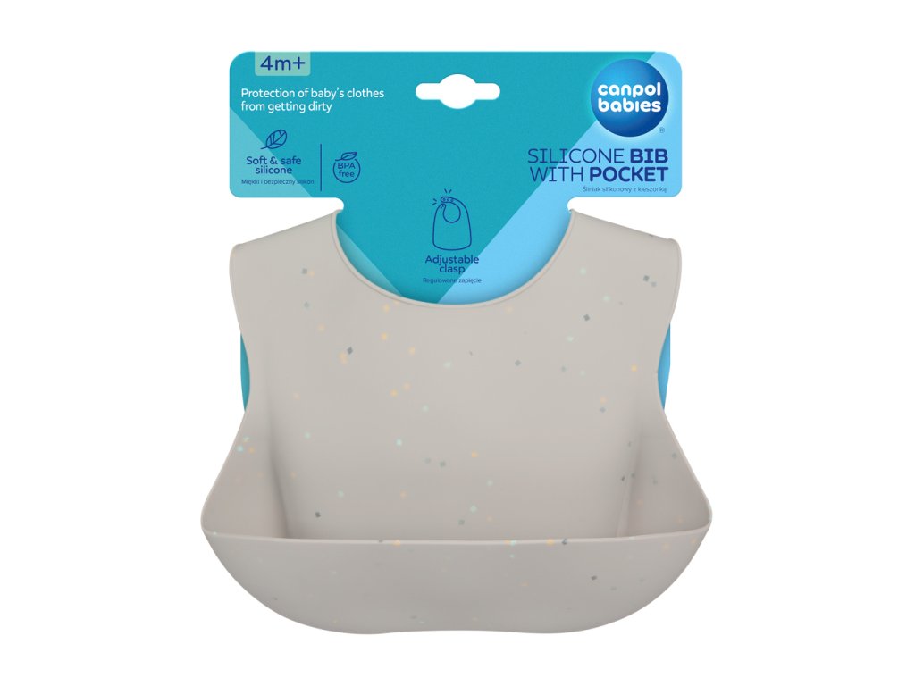 Canpol babies Silikonový bryndák s kapsou DOTS šedý