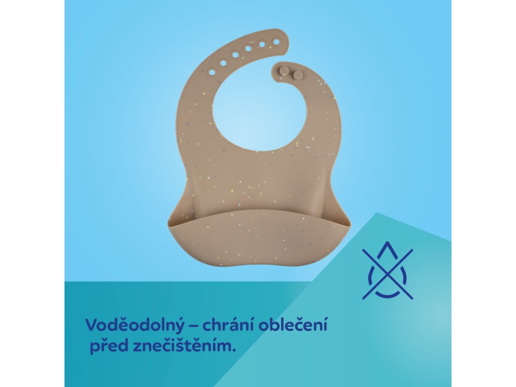 Vodotěsný silikonový bryndáček s kapsou je nezbytný při rozšiřování jídelníčku vašeho miminka a při prvním samostatném krmení. Dokonale ochrání oblečení vašeho dítěte před ušpiněním a mokrem při jídle. Je lehký, měkký, pružný a příjemný na dotek. Bryndáček je vyroben ze 100% vysoce kvalitního potravinářského silikonu, díky čemuž je bezpečný a bez zápachu. Praktická hluboká kapsa uchová zbytky jídla, které neskončily v ústech dítěte. Kapsa je navržena tak, aby po naplnění jídlem zachovala svůj tvar a dítě ji při pohybu nebo přitlačení náhodou nevysypalo. Bryndáček se snadno čistí – můžete jej opláchnout pod tekoucí vodou, otřít nebo mýt v myčce na nádobí.
