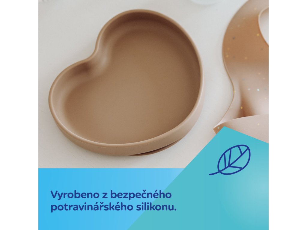 Silikonový talíř s přísavkou ve tvaru SRDCE je ideální pro první příkrmy dítěte. Speciální přísavka zabraňuje náhodnému převrhnutí nebo pádu talíře ze stolu.