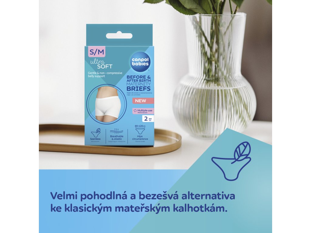 Měkké, pružné a velmi strečové – dokonale padnou na bříško, netlačí, nemačkají se, takže jsou ideální pro budoucí maminky během těhotenství i po porodu. Efektivně fixují bříško bez pocitu tření nebo nepohodlí. Nedráždí pokožku a zajišťují volné proudění vzduchu. Diskrétní, pod oblečením neviditelné, poskytují pohodlí po celý den. Těhotenské kalhotky Canpol babies perfektně drží poporodní vložku na svém místě a zajišťují pohodlí při používání. Vhodné poporodní prádlo usnadňuje a urychluje hojení ran, jak po fyziologickém porodu, tak po císařském řezu. Vysoký pas kalhotek je šetrný k jizvě po císařském řezu. Těhotenské a poporodní kalhotky Canpol babies 2v1 jsou opakovaně použitelné a lze je prát v ruce nebo i v pračce při teplotě do 60°C. Balení obsahuje 2 kusy. Velikost L/XL je vhodná pro ženy s obvodem boků od 95 do cca. 145 cm. Kalhotky mají certifikát kvality Oeko-Tex. Certifikát OEKO-TEX® Standard 100 je zárukou bezpečnosti textilních výrobků přicházejících do přímého kontaktu s pokožkou, použitý materiál neobsahuje žádné škodlivé látky, které mohou mít negativní dopad na lidské zdraví a životní prostředí, včetně: pesticidů, chlorfenolů, formaldehyd, alergenní barviva.