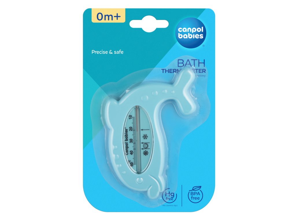 Koupací teploměr slouží ke kontrole teploty vody připravované koupací lázně malého dítěte. Je přesný, spolehlivý s dobře čitelnou stupnicí. K měření teploty se používá obarvený alkohol/petrolej - podle šarže výrobku. Trubička teploměru je bezpečně zapuštěna v těle teploměru tak, aby se k ní dítě nedostalo. Upozornění! Doporučená teplota koupací lázně malého dítěte se pohybuje mezi 32 - 37°C a je na teploměru označena symbolem smějící se tváře. Teplota označená sněhovou vločkou je příliš nízká a teplota označená sluníčkem příliš vysoká.