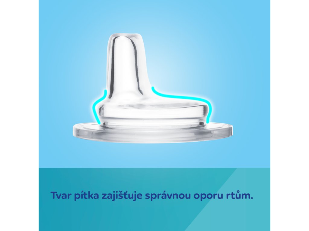 Měkké pítko z jemného silikonu pro citlivé dětské dásně.