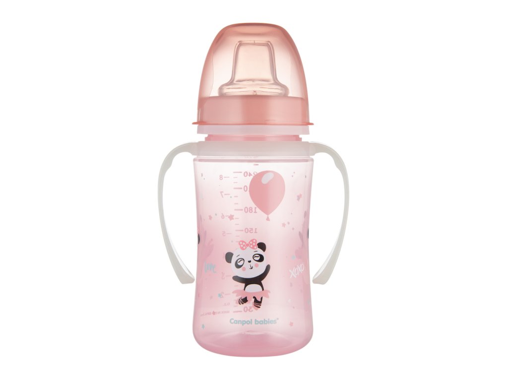 Canpol babies Tréninkový hrneček se svítícími úchyty EXOTIC ANIMALS 240ml růžový