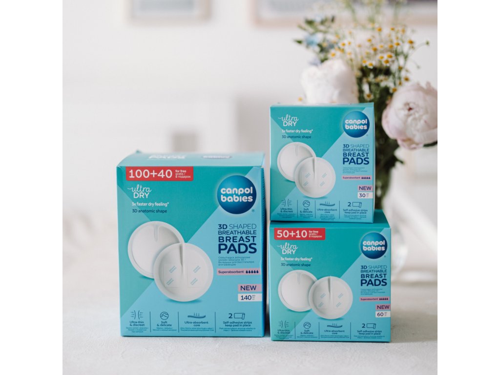 Canpol babies tvarované prodyšné jednorázové vložky do podprsenky 3D jsou určeny ženám v pozdější fázi těhotenství a kojícím matkám. Nedráždí citlivou pokožku prsu ani bradavky. Měkká absorpční vrstva zadržuje vytékající mléko a nepropustná vnější vrstva zabraňuje ušpinění prádla. Samolepící páska pomáhá fixovat vložku na správném místě. Vložky se svým speciálním 3D tvarem výborně přizpůsobí tvaru prsu a jejich použití je velmi diskrétní.