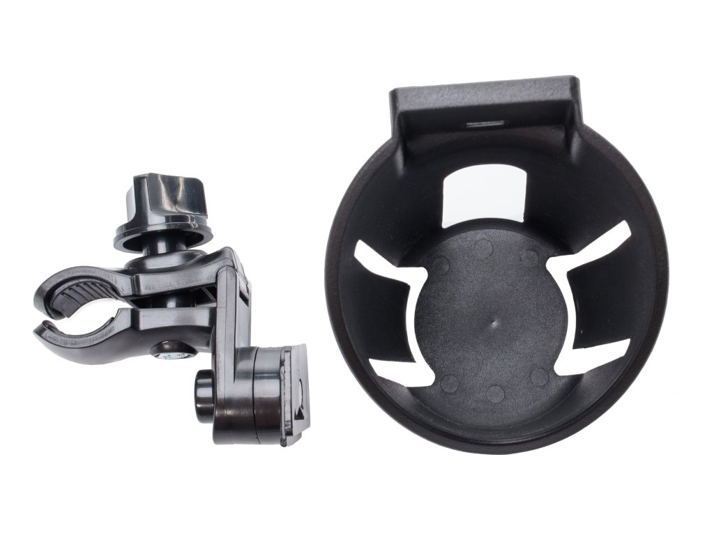Držák na lahev s pitím vhodný na většinu typů kočárků, ale také na dětská kola, kočárky pro panenky apod. Klapky drží lahev pevně na svém místě a díky tlačítkům lze držák nastavit do potřebného úhlu. Držák se snadno připevní i odejme.