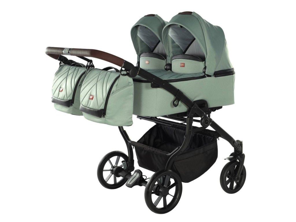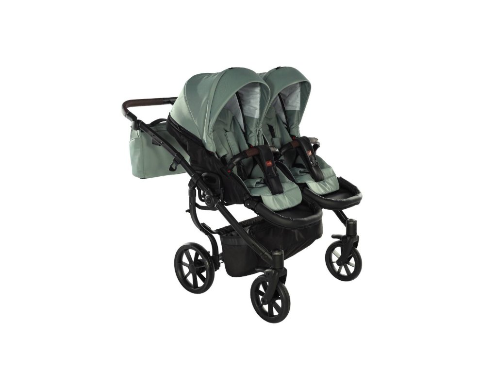 Kočárek pro sourozence obsahuje podvozek s lehkou, hliníkovou konstrukcí a předními, otočnými koly pro dynamickou jízdu v různých typech terénu. Kvalitní pérování zadních kol a centrální brzda zajišťují stabilní a bezpečnou jízdu s kočárkem. Pohodlnou jízdu zabezpečí polohovatelné řídítka opatřené měkkou gumou pro komfortní úchop. Podvozek má prostorný košík. Má systém vycvaknutí korbičky jednou rukou.