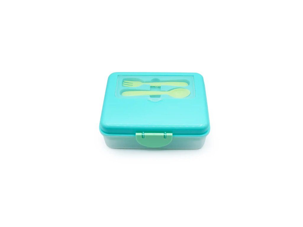 - Součástí je integrovaná lžíce a vidlička s vlastním víčkem