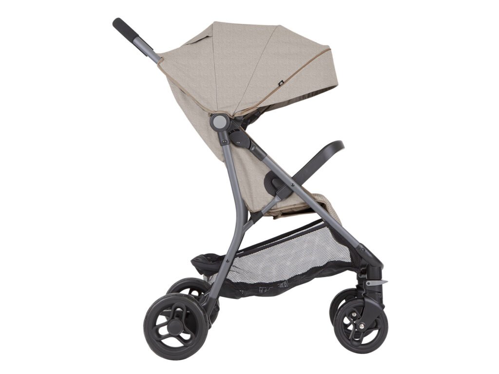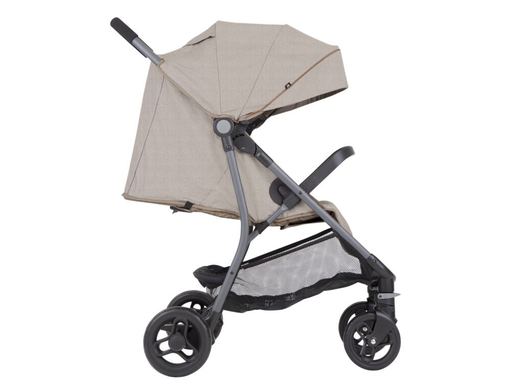 Pohodlný - Pohodlné sezení, které sklopíte až do lehu, zaručí pohodlné cestování. Rozměrná bouda s rozšířením pak poskytne za slunečného počasí příjemný stín.
