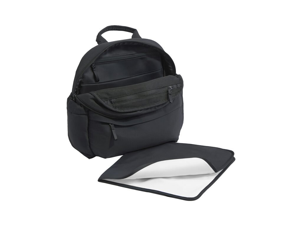 Součástí balení je omyvatelná přebalovací podložka pro přebalení na cestách. Přední kapsa na zip usnadní přístup k věcem, které chcete mít vždy po ruce. Materiál odpuzuje vodu a chrání obsah batohu i za nepříznivého počasí.