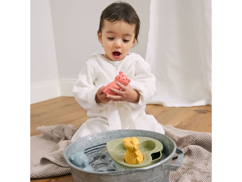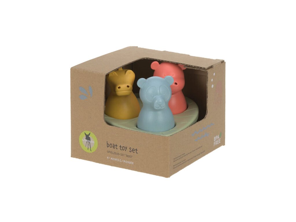 Boat Toy Set Water Friends olive je jedním z dalších výrobků značky LÄSSIG, vyznačujícím se vysokou kvalitou materiálu, jejich zpracováním a svojí funkčností. Čtyřdílná sada hraček je připravena na velkolepou plavbu kolem světa. Skládá se z lodi ve tvaru tropického listu a tří zvířecích pasažérů, kteří pocházejí z různých kontinentů. Vaše dítě může dát průchod své kreativitě a užít si zábavu jak ve vodě, tak na písku.kreativní set čtyř hraček, který lze využít při hraní na pískovišti, ve vaně či brouzdališti