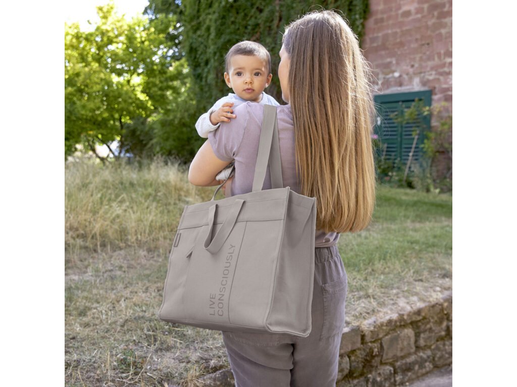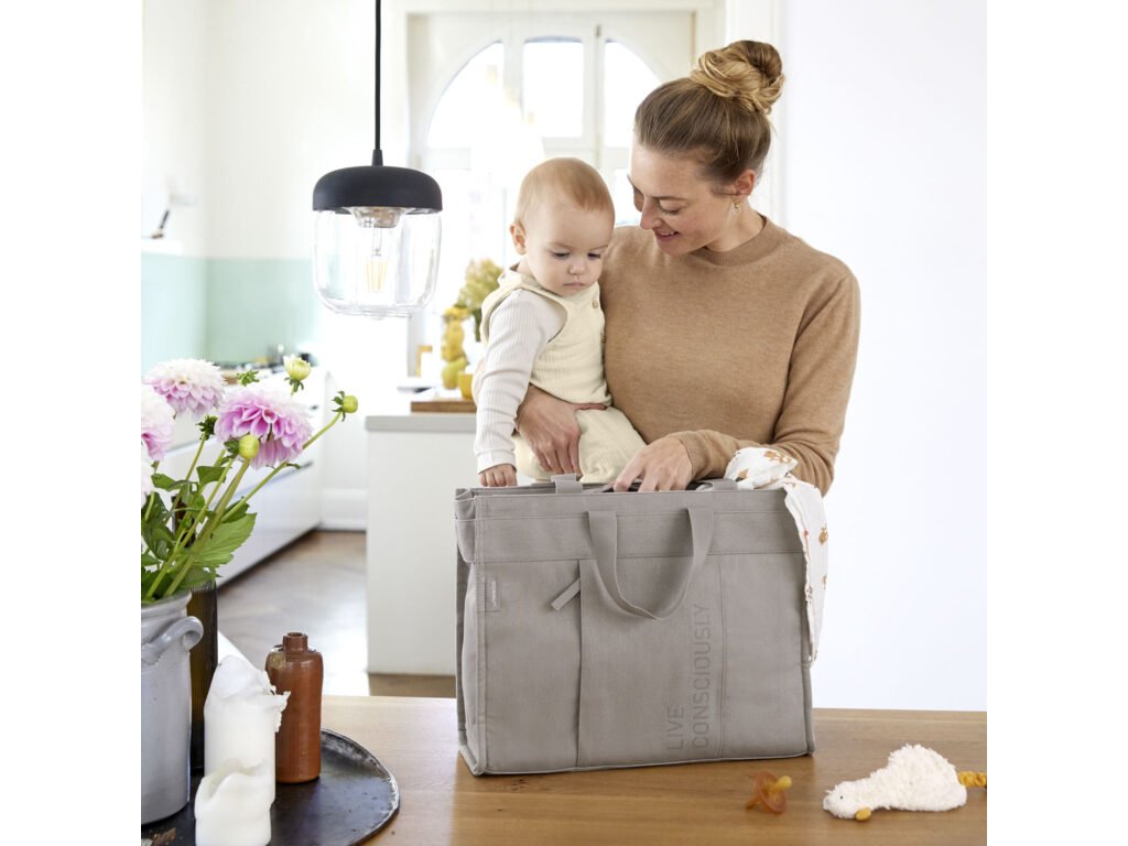 Tote Up Bag německé značky LÄSSIG je dalším z produktů vyznačující se vysokou kvalitou, odolností materiálů a praktičností. Vysoký důraz je kladen také na ekologii. Přebalovací taška v jednoduchém designu byla vyrobena v GREEN LABEL kolekci za použití recyklované bavlny. Je tedy nejenom udržitelná, ale velmi praktická, a to nejenom díky velkému úložnému prostoru a praktickým přebalovacím doplňkům, ale zejména díky svému povrchu, který odpuzuje vodu.•luxusní přebalovací taška vyrobená za použití recyklované bavlny