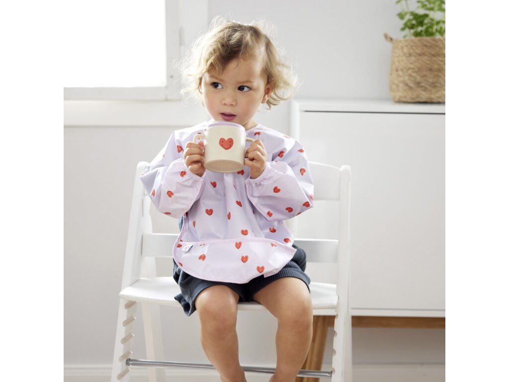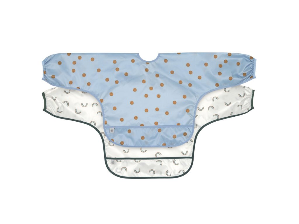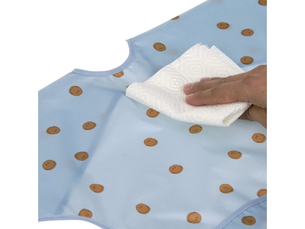 rukávky stažené gumičkou umožňují bezproblémové vyhrnutí rukávů a tím usnadní použití pro různě velké děti
