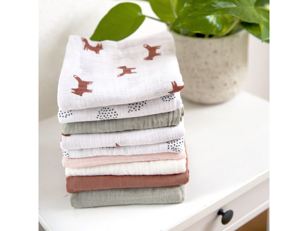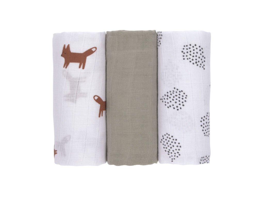 LÄSSIG Swaddle Burp blanket 60x60 Little Forest 2025 fox