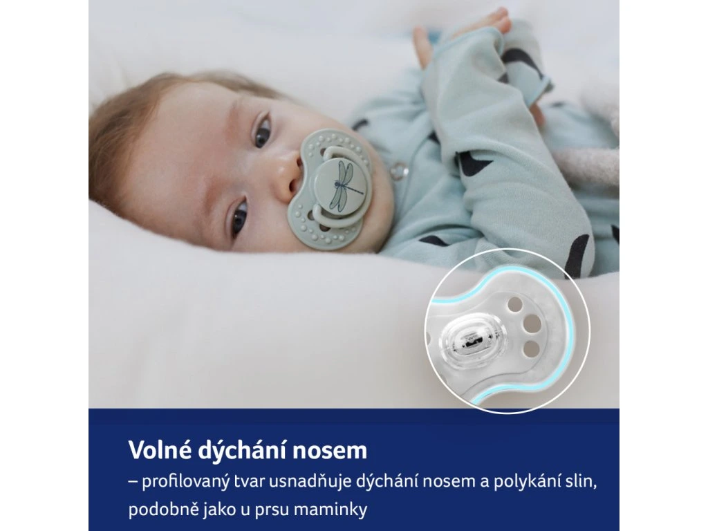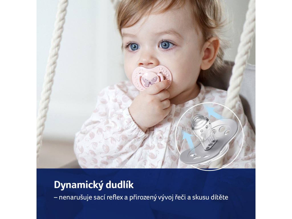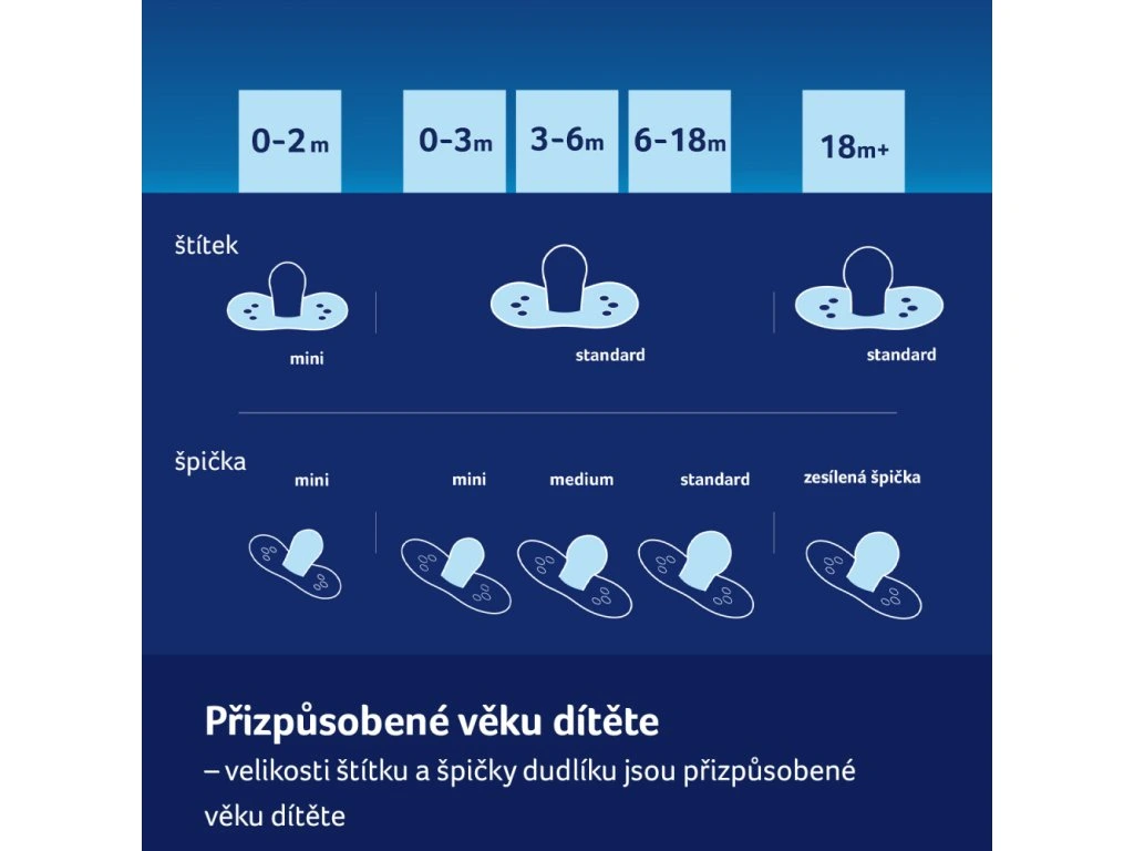 Unikátní symetrická dynamická špička se velmi dobře odvzdušňuje a nedeformuje zubní patro dítěte: