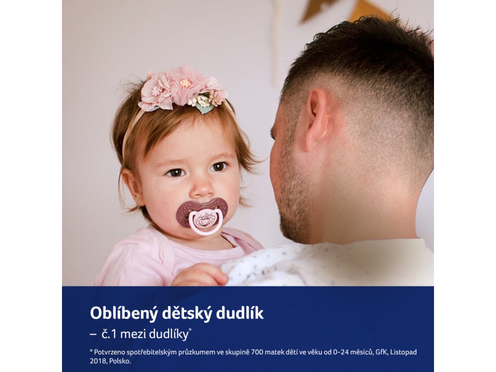 Před každým podáním dítěti zkontrolujte kvalitu dudlíku. Věnujte dudlíku zvýšenou pozornost poté, co dítěti vyrostou první zoubky. Vyzkoušejte kvalitu špičky důkladným natažením všemi směry. Při prvních známkách poškození dudlík ihned vyhoďte a již dále nepoužívejte. Používejte pouze takové držáky dudlíku, které odpovídají požadavkům normy EN12586. Nikdy nepřipevňujte dudlík na různé šňůrky, tkaničky či stužky oděvu. Dítě se může zadusit. Nenechávejte dudlík na přímém slunečním světle, v blízkosti tepelného zdroje nebo v dezinfekčních prostředcích déle, než je doporučováno - můžete způsobit oslabení špičky dudlíku.