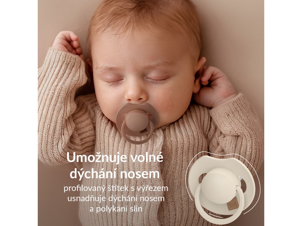 Zploštělá sací část umožňují dítěti volně zavřít ústa a správně pracovat dásněmi.