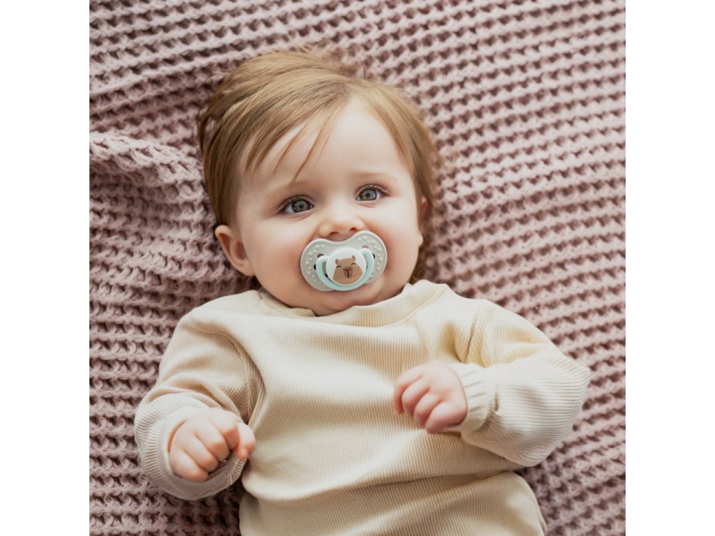 Dynamický dudlík LOVI z kolekce CAPICHILL je bezpečný pro sací reflex a nenarušuje vývoj řeči a skusu*.
