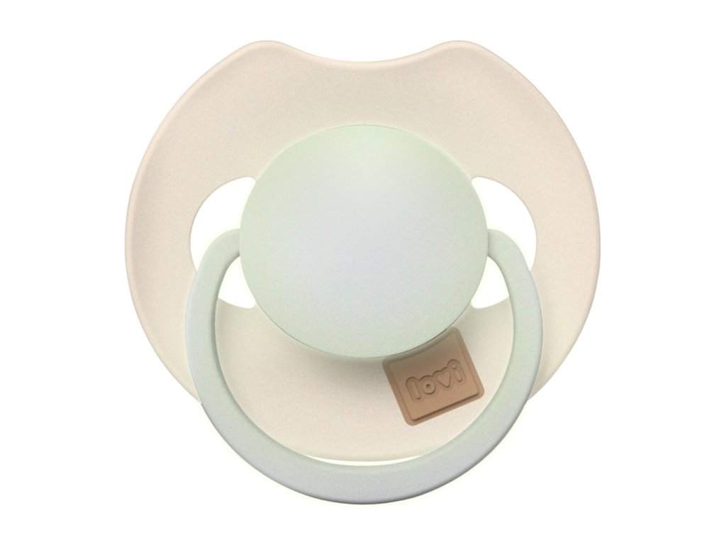 Dynamický dudlík LOVI z kolekce PRIME má střed a úchytku svítící ve tmě, což usnadňuje jeho hledání v noci.