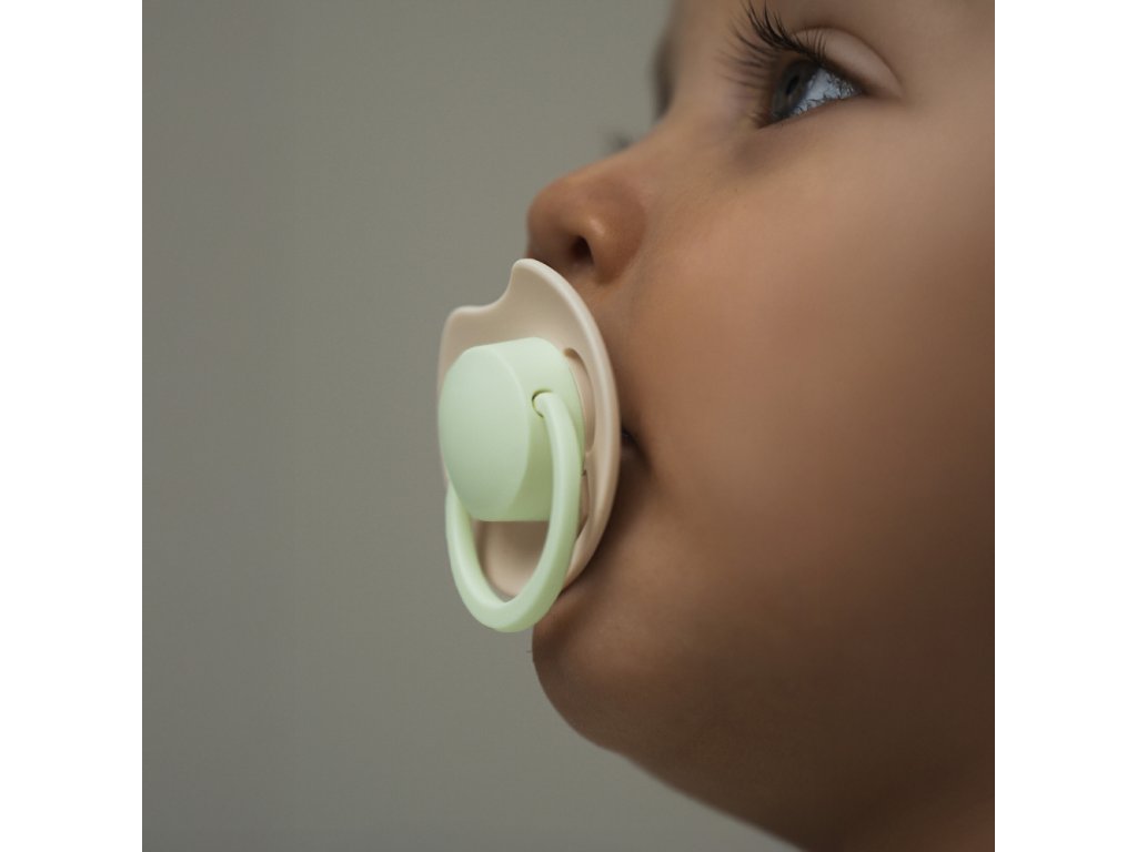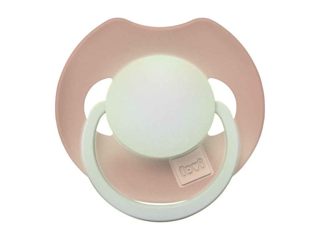 Dynamický dudlík LOVI z kolekce PRIME má střed a úchytku svítící ve tmě, což usnadňuje jeho hledání v noci.