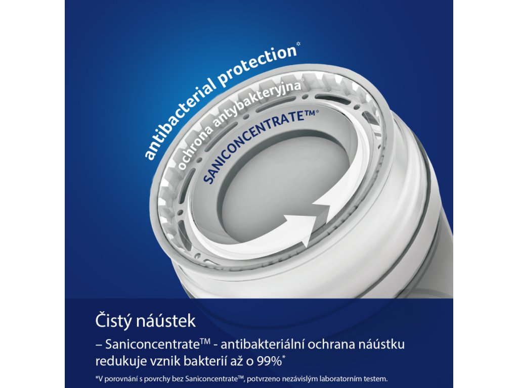 Antibakteriální ochrana SaniconcentrateTM - redukuje až 99,99 % bakterií.