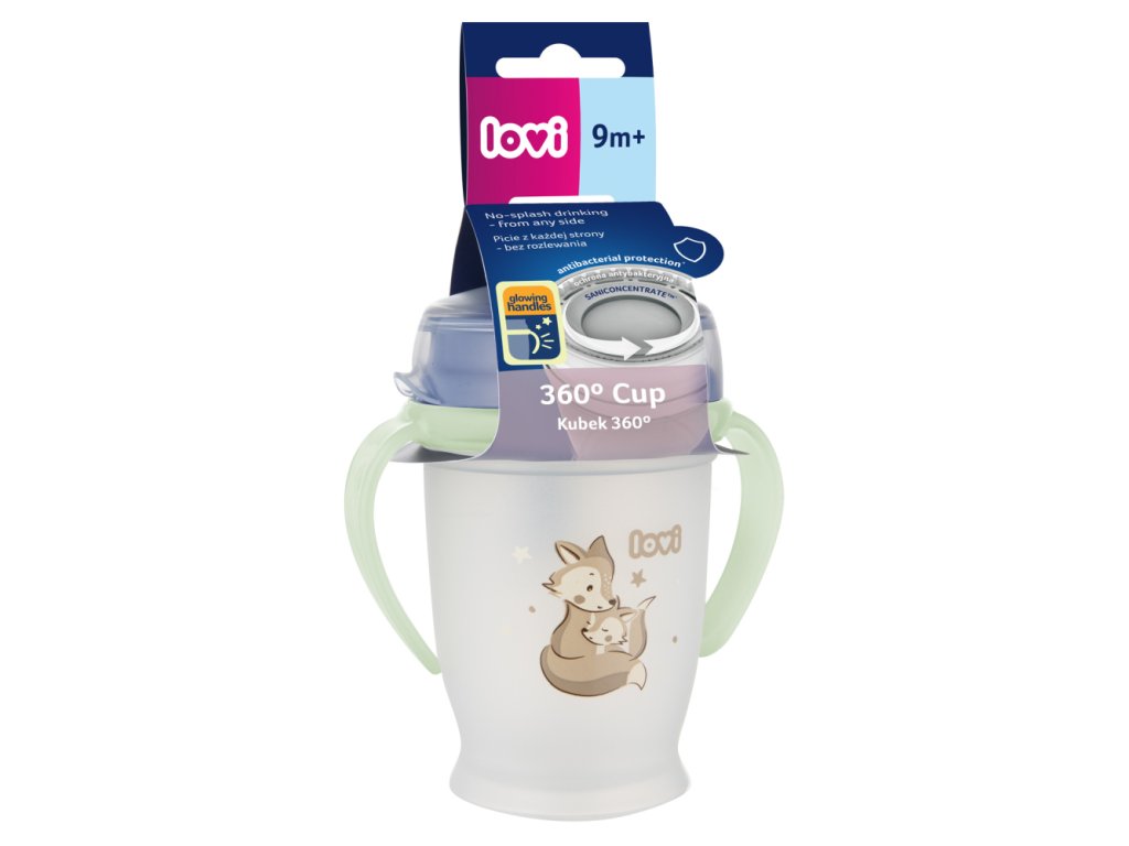 LOVI Hrneček 360° se svítícími úchyty NIGHT&DAY 250ml kluk