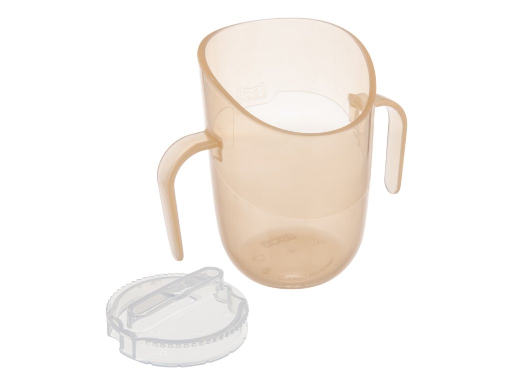 Lehký a malý hrneček s profilovanými rukojeťmi přizpůsobenými malým dětským ručičkám.