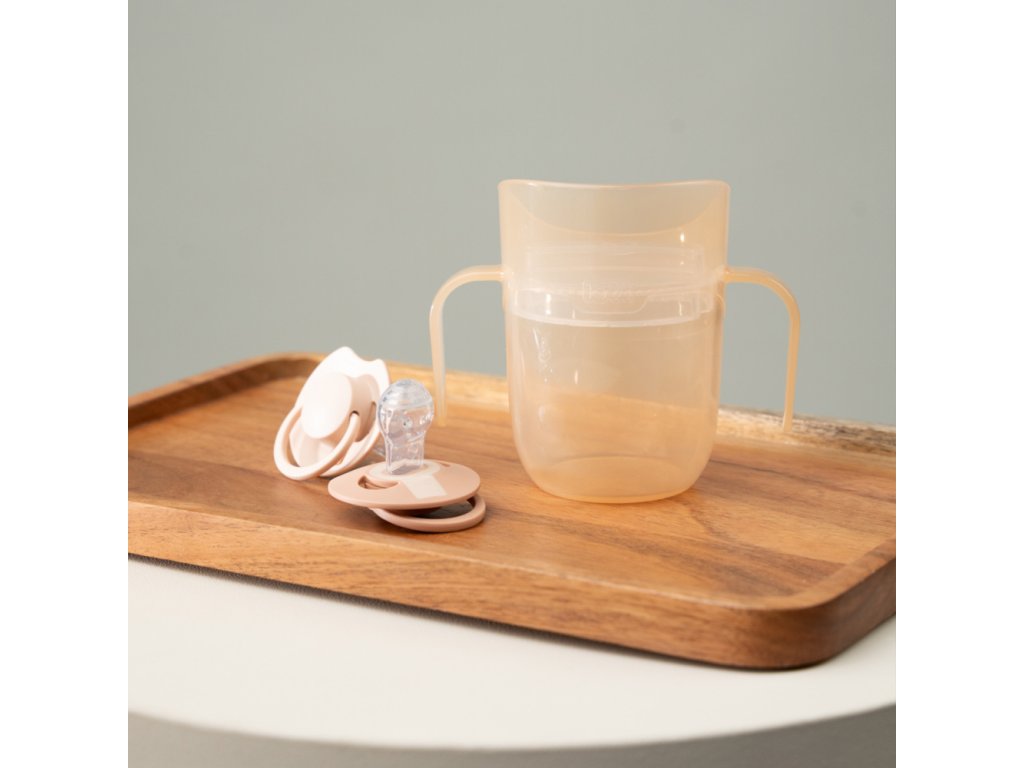 Přizpůsobeno vývoji dítěte – jakmile dítě zvládne pít z hrnečku samostatně, lze vložku vyjmout a dítě může pít už z otevřeného hrnečku.